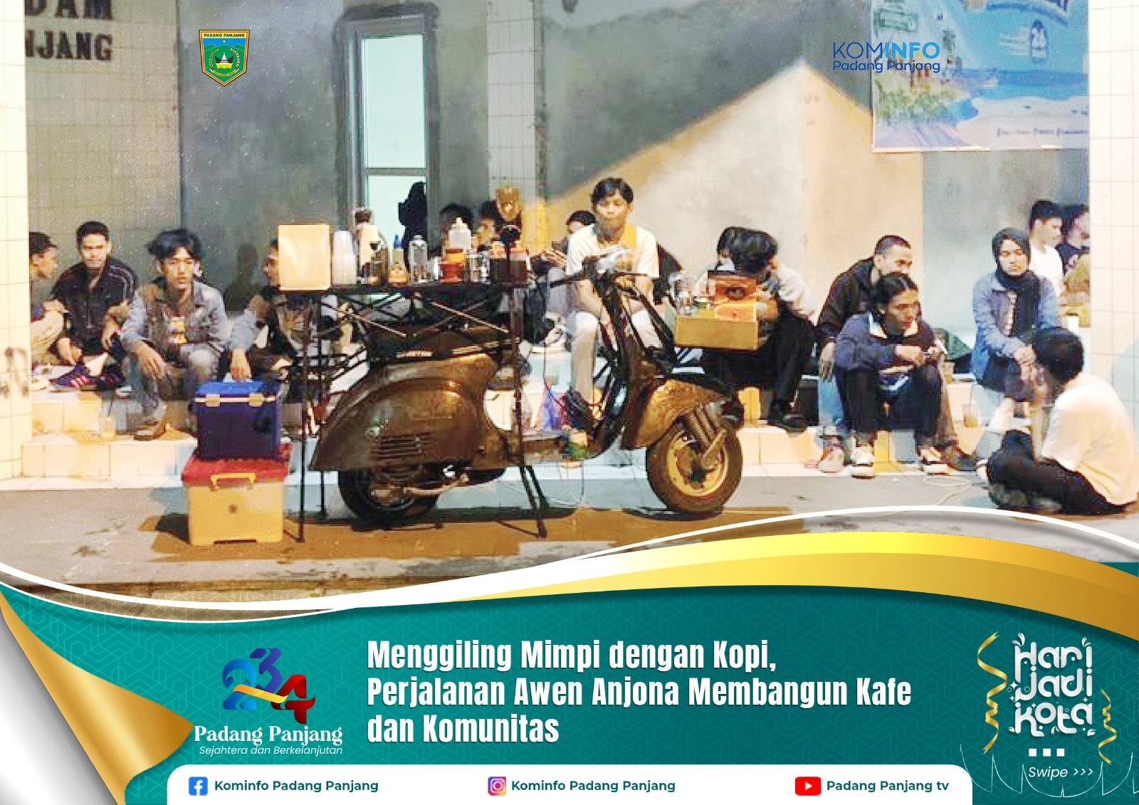 BERMULA dari Vespa kesayangan, Wowen Anjona (24), mahasiswa DKV Institut Seni Indonesia (ISI) Padang Panjang, memulai perjalanan uniknya merintis Brewscoot Street Coffee. Dengan skuter (kendaraan roda dua) yang menjadi ciri khasnya, Wowen berkeliling kampus dan sudut-sudut kota untuk menjajakan kopi racikannya, menghadirkan pengalaman minum kopi yang berbeda bagi penikmat kopi.