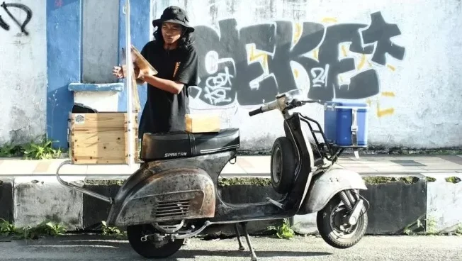 Mahasiswa Desain Komunikasi Visual (DKV) berusia 24 tahun ini membuktikan bahwa modal sederhana berupa Vespa dan passion dapat menghadirkan inovasi dalam bisnis kopi.