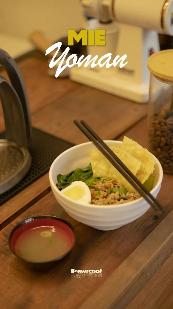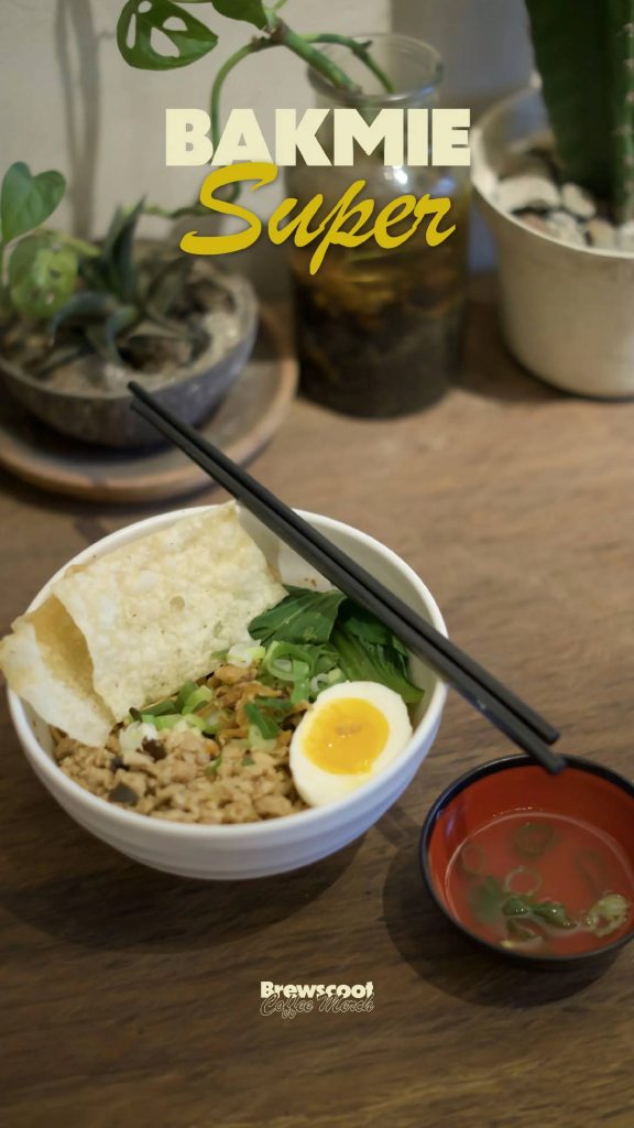 Mie lembut dengan topping ayam bumbu spesial, bakso, dan pangsit renyah, disajikan dengan kuah kaldu gurih khas Brewscoot. Paduan rasa klasik dan modern yang bikin nagih!