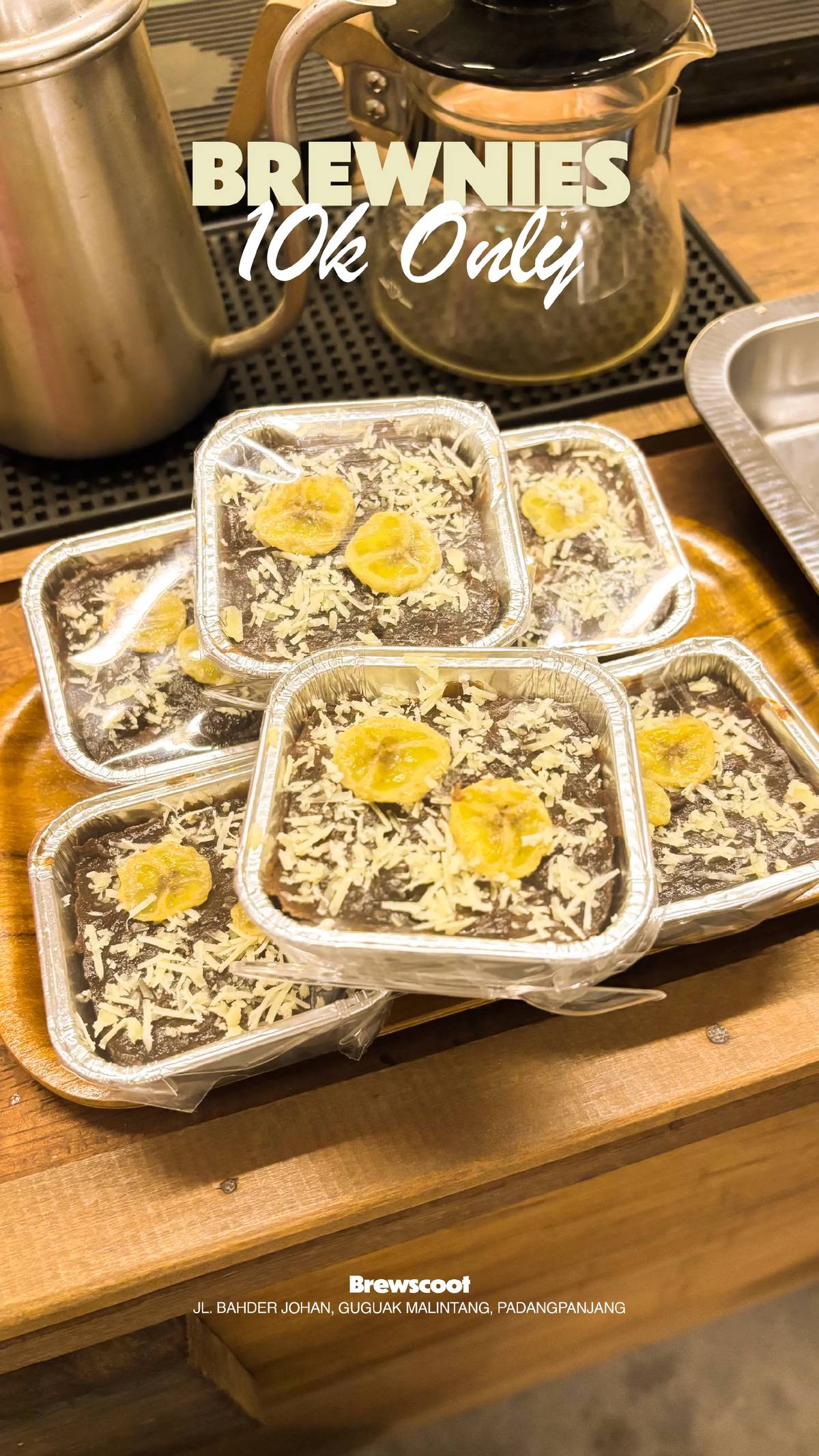 Brownies lembut dan fudgy dengan aroma cokelat premium yang menggoda. Dipanggang sempurna untuk rasa manis yang pas dan tekstur lumer di mulut — teman terbaik untuk secangkir kopi Brewscoot favoritmu.